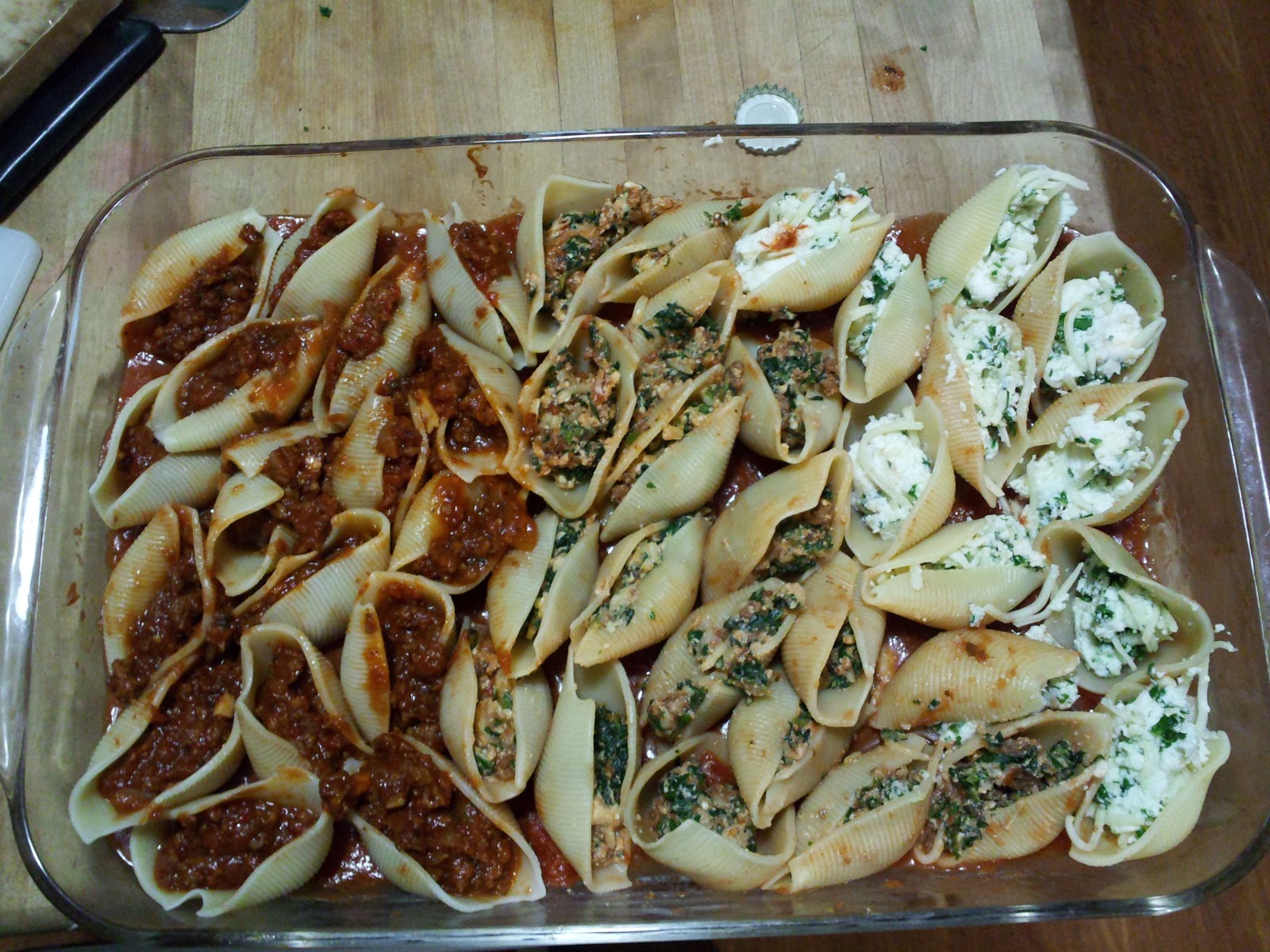 I think of how well everyone enjoyed the delicious, hearty meat sauce ala Jane that I made a few weeks ago, and how delicious that tick and zesty sauce would be inside of those big seashells.